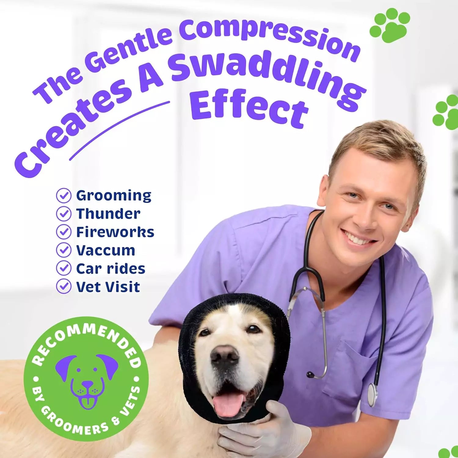 -Soothes anxiety during fireworks and storms.